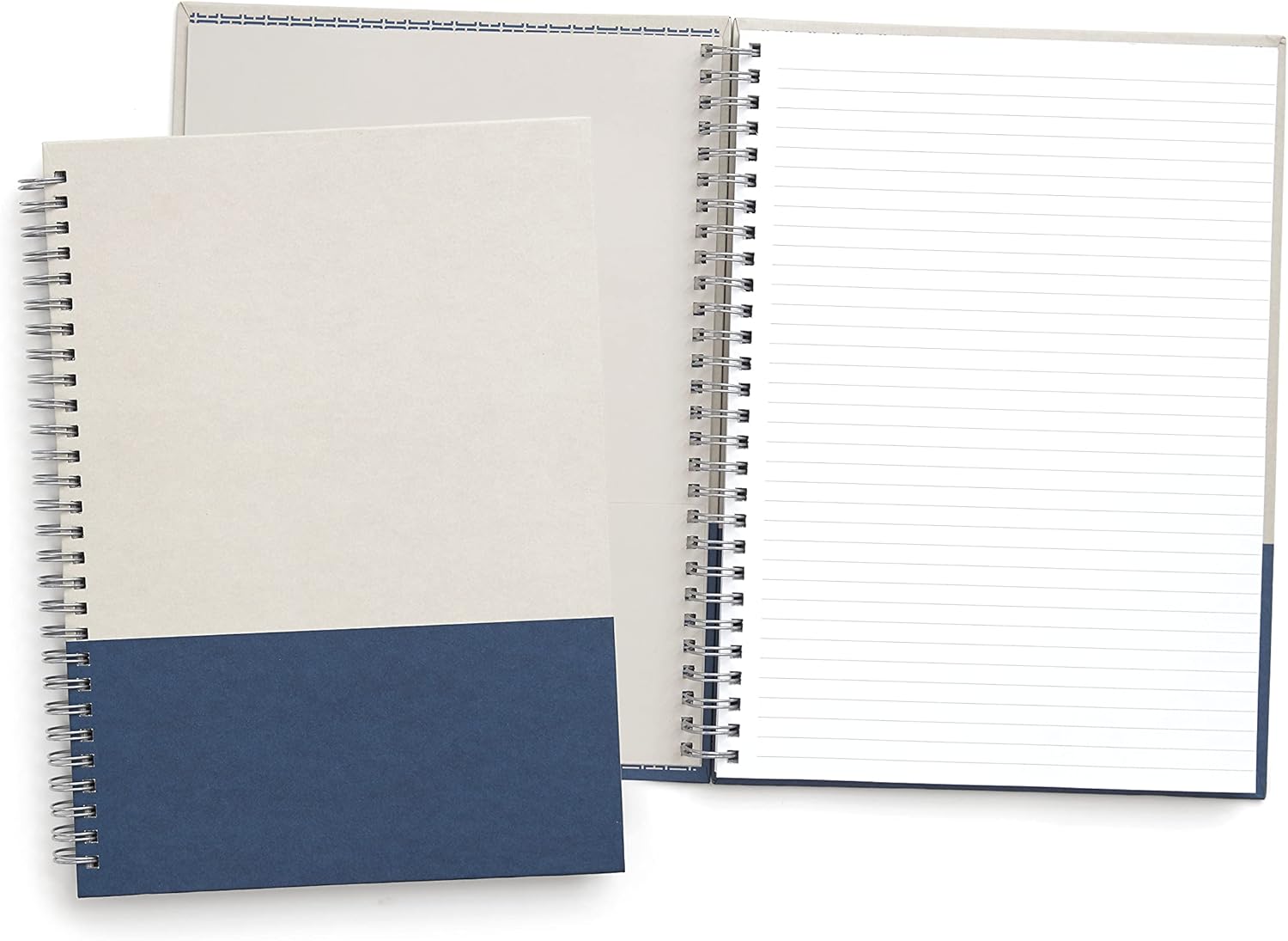 - Sturdy gray and blue printed kraft hard cover